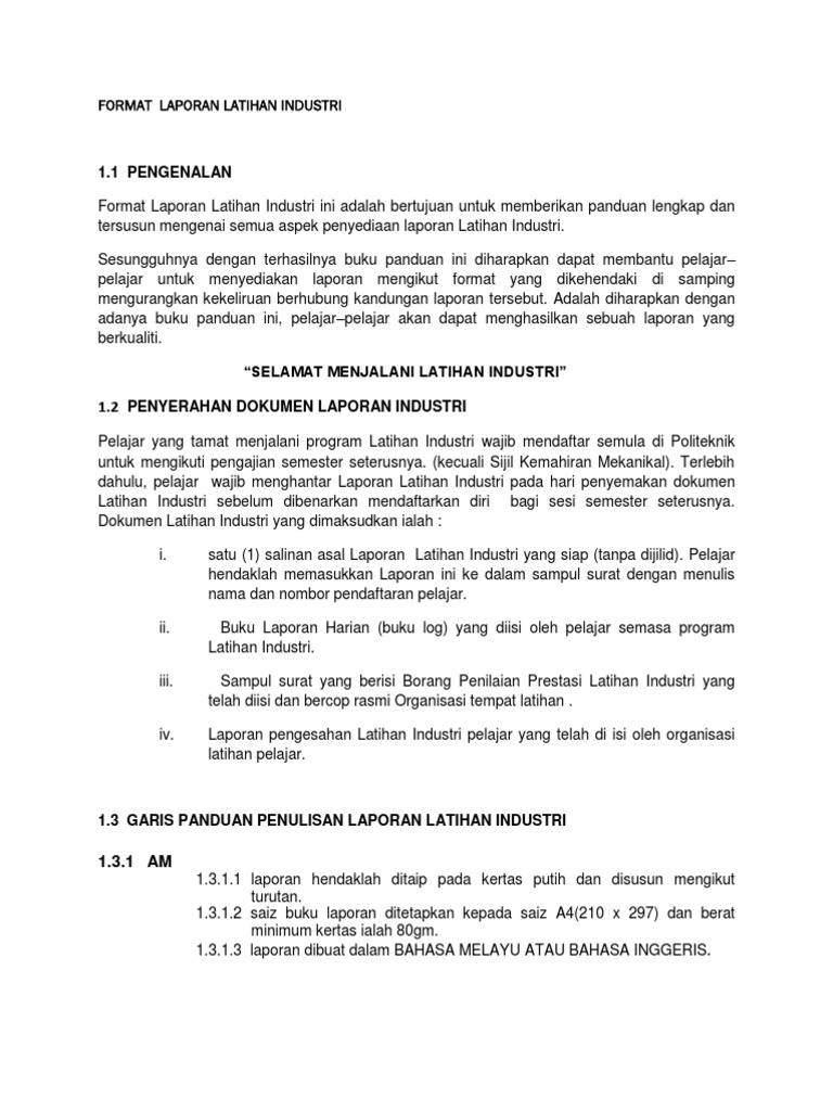Pdf Contoh Laporan Industri Politeknik Muhd Safwan Academia Edu